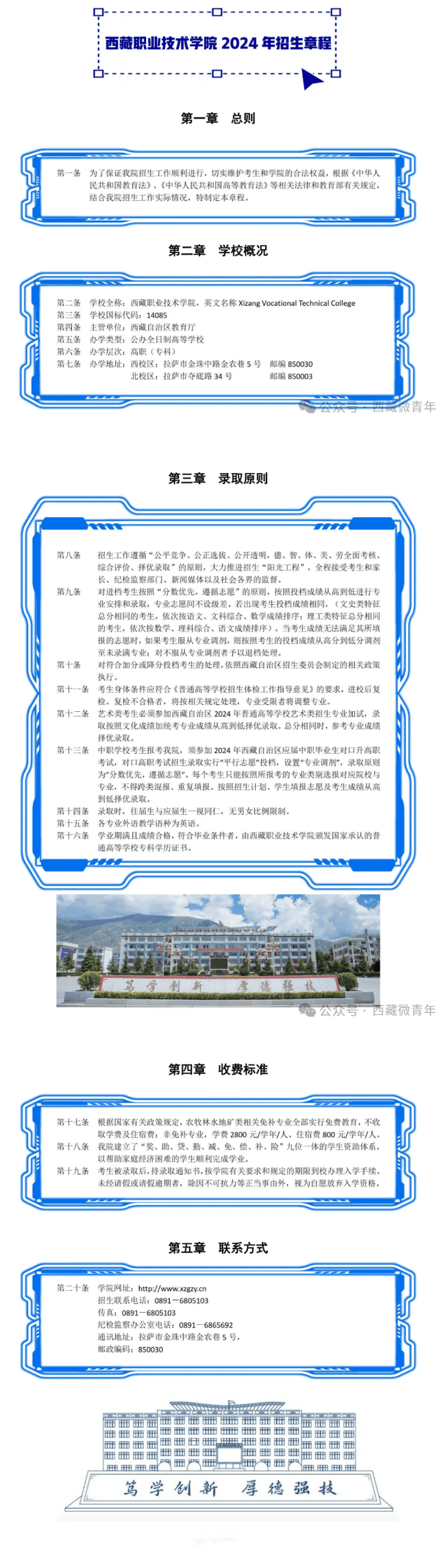 西藏职业技术学院2024年招生章程